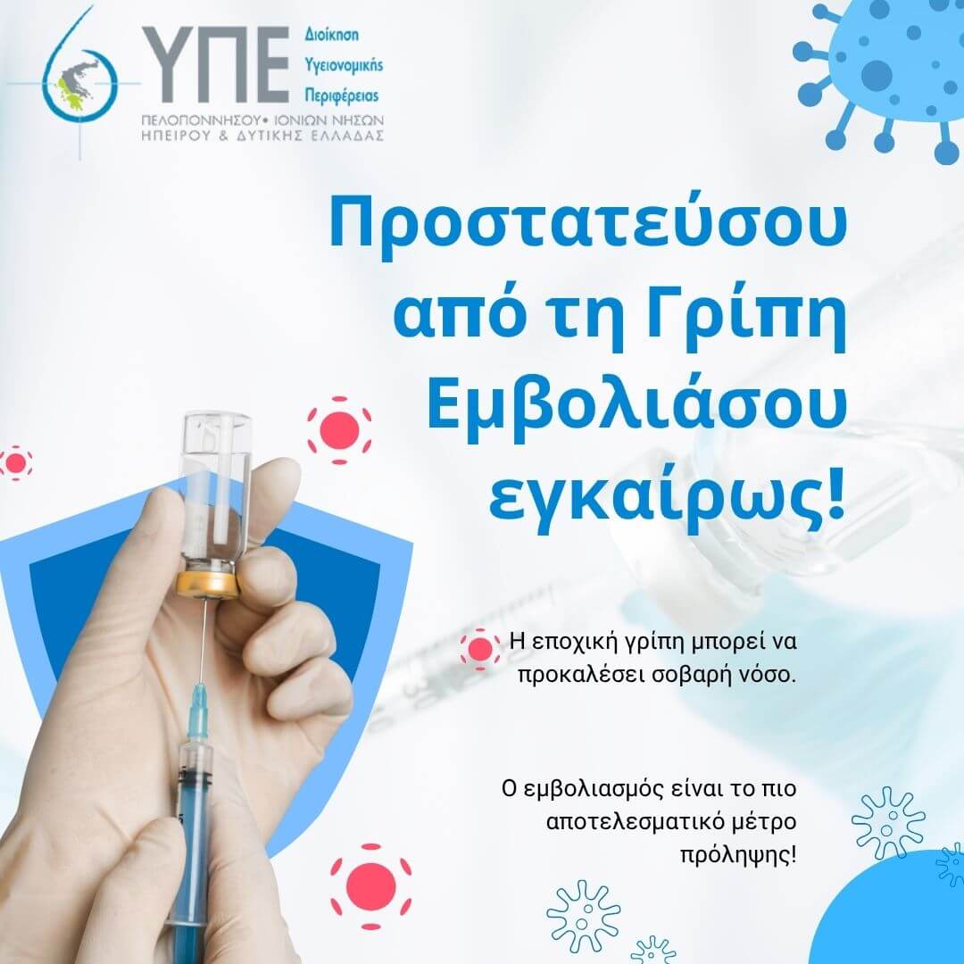 Η 6η Υγειονομική Περιφέρεια ενημερώνει το κοινό και τους επαγγελματίες υγείας για την εγκύκλιο του Υπουργείου Υγείας σχετικά με την πρόληψη και αντιμετώπιση της εποχικής γρίπης 2025-2026 και τις οδηγίες για τον αντιγριπικό εμβολιασμό.