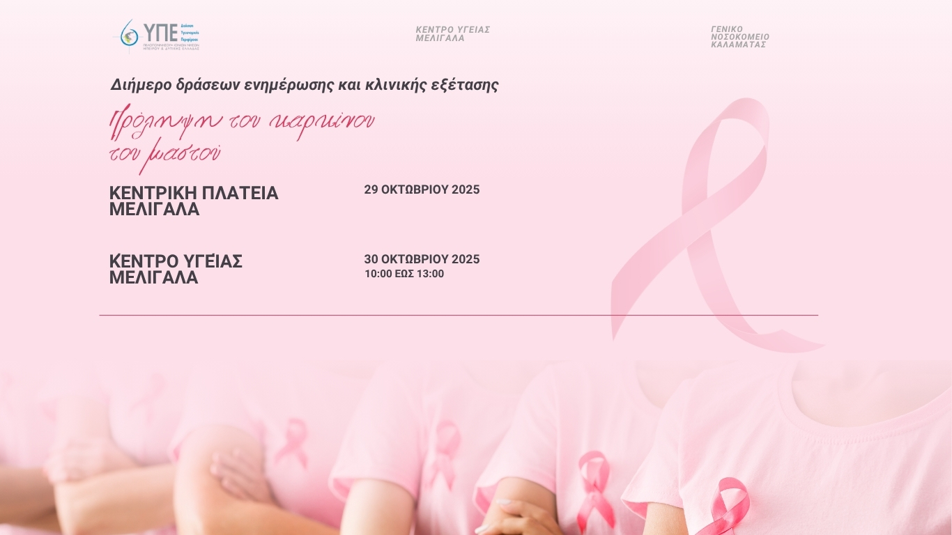 Διήμερο δράσεων ενημέρωσης και κλινικής εξέτασης για την πρόληψη του καρκίνου του μαστού από το Κ.Υ. Μελιγαλά  .